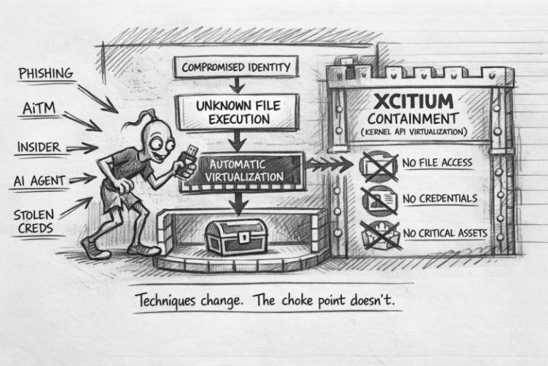If unknown files are automatically virtualized and isolated, the payload can run — but it cannot touch the real system.